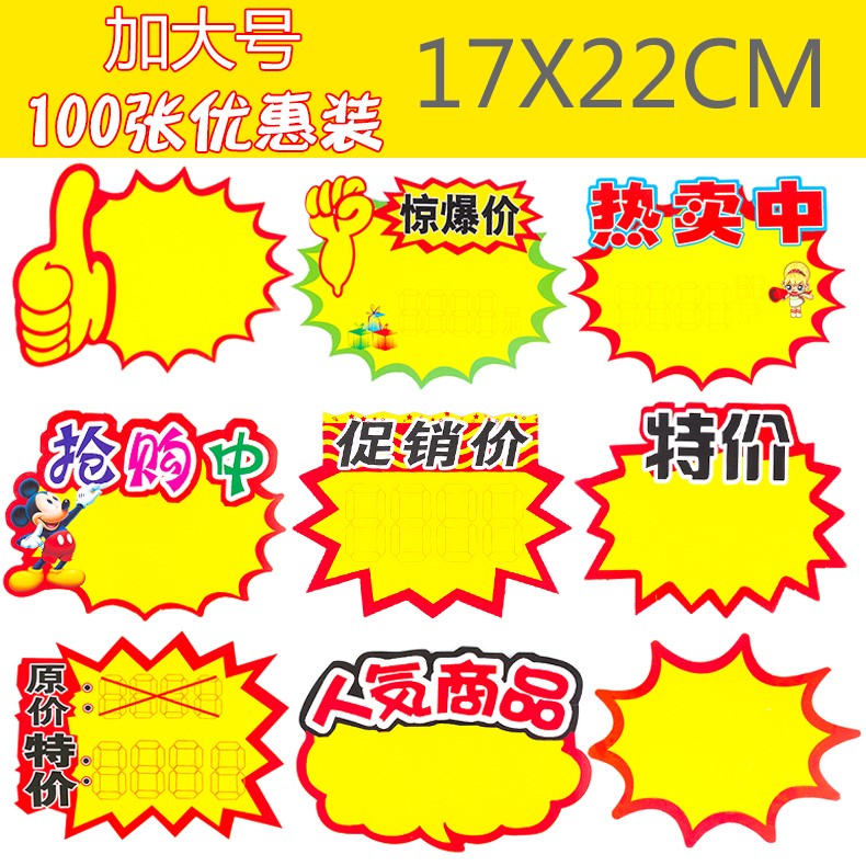 加大见描述号100张超市POP炸贴惊价商品促销贴纸价格贴标签热门设计联盟服务商