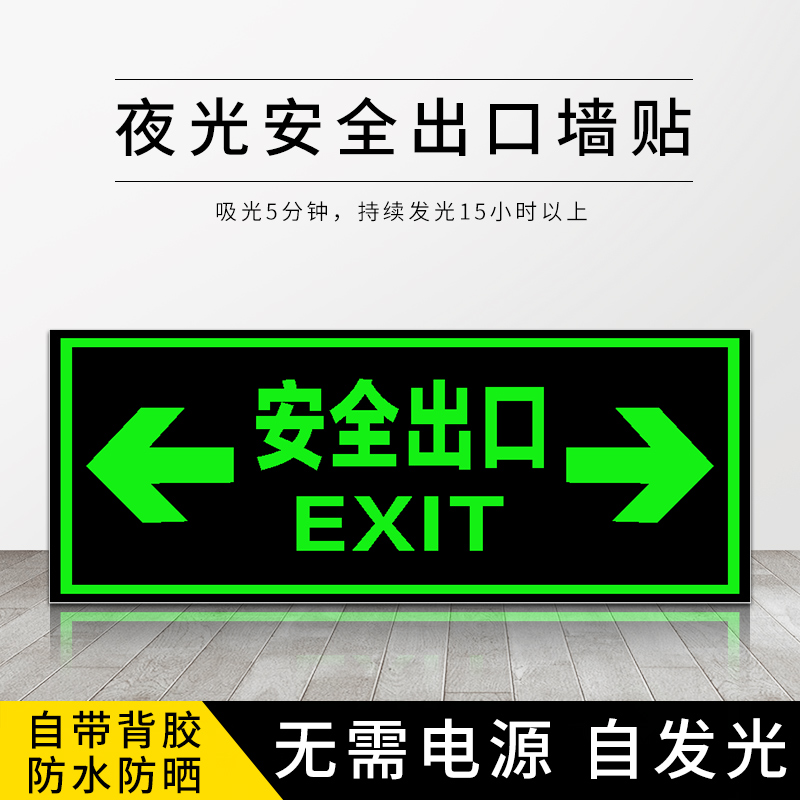 夜光标志出口疏散头指示牌墙贴地贴楼梯标识牌提示牌工厂安热门设计联盟服务商