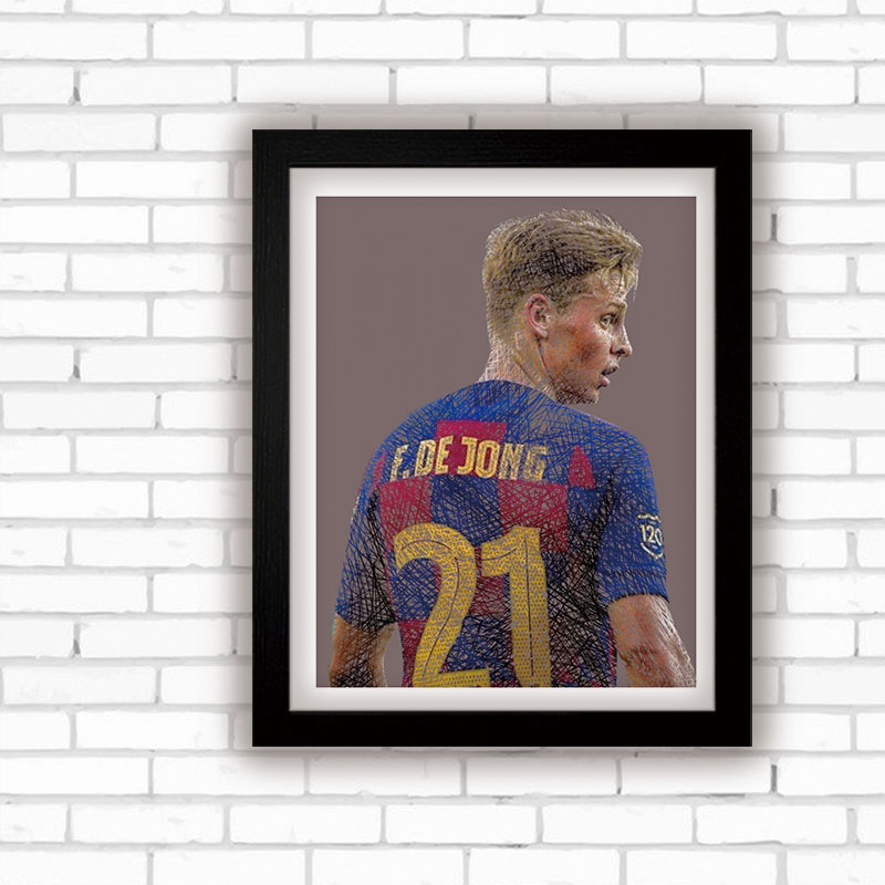 相框简约实木装饰画墙挂摆家居海报67寸10足迷球星德容萨巴塞罗那热门设计联盟服务商