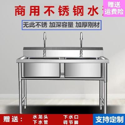 不锈钢水槽双槽洗菜盆摆放地面商业槽式方便商用加涮池大单槽大。热门设计联盟服务商