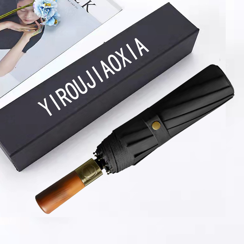 2021新款10骨自动原木柄晴雨伞男士高档商务折叠伞高端礼品伞热门设计联盟服务商